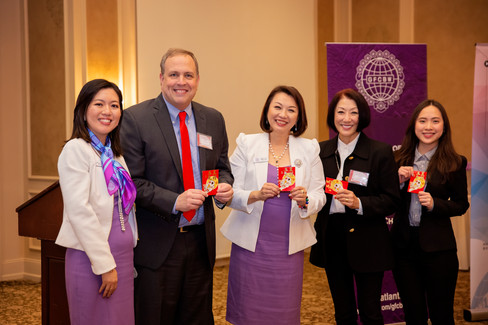 世界華人工商婦女企管協會亞特蘭大分會(簡稱世華亞特蘭大分會)於1月7日星期六下午四點,假St. Ives Country Club的宴會廳,舉行了2023年新春會員大會, 共有32名會員及三位世華亞特蘭大分會榮譽顧問Sachi Koto, 張國泰及范琪君參加. 六點開始的晚宴活動,邀請到華僑文教服務中心歐宏偉主任、駐亞特蘭大台北經濟文化辦事處李瑞徵組長、Johns Creek市長 John Bradberry、世界台灣商會聯合總會輔導總會長王德博士、僑務委員陸復泰、 張崧軒、范琪君、僑務促進委員Joseph Hsiao 及其他僑團代表,共計61名來賓參加。會員大會安排了會務報告, 回顧及展望今年活動,財務報告,介紹第三屆理監事團隊,新理事朱騏謙、新榮譽顧問范琪君及新會員, 並在監事長邱婷蘭的帶領下,宣誓願遵守世華宗旨及本會之章程,並介紹世華總會、華冠獎、牽手獎及美姿美儀講座,晚宴中並有摸彩、猜歌曲及猜迷語等活動,大會在全體理監事的團隊努力下圓滿完成。